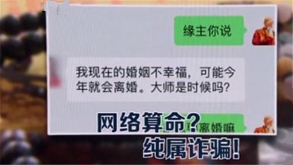 而山东的李女士正在和一个叫“命相大师”的人聊天,几天前“大师”帮她做了一场提升姻缘运的法事,谁知几天后男友突然和她提出分手。