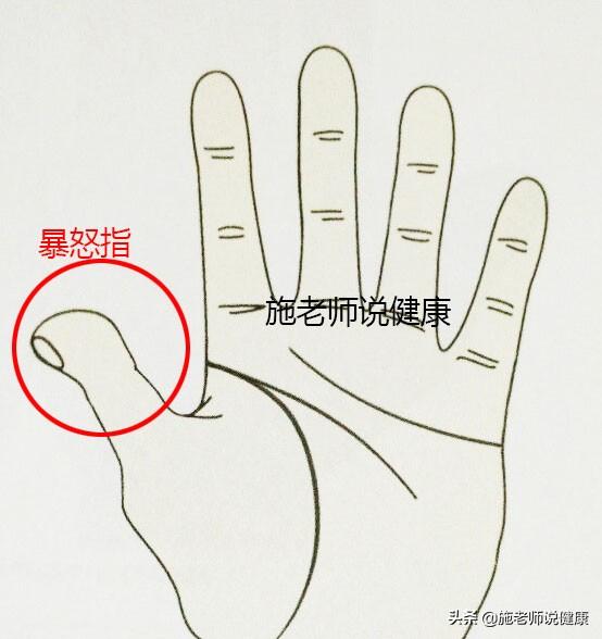 暴怒指:大拇指如同汤勺一样,指腹较厚,拇指短。