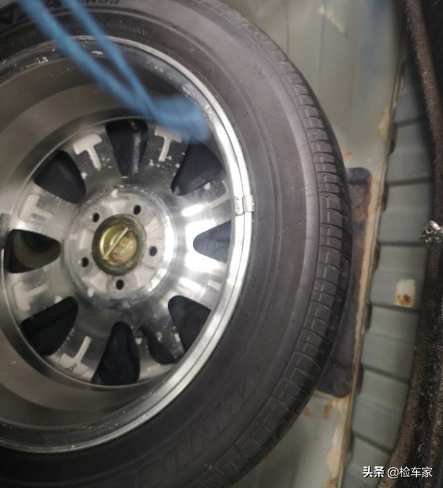 后围板和备胎槽还算正常,没有发现修复迹象,备胎已经更换,但是没有发现随车工具。