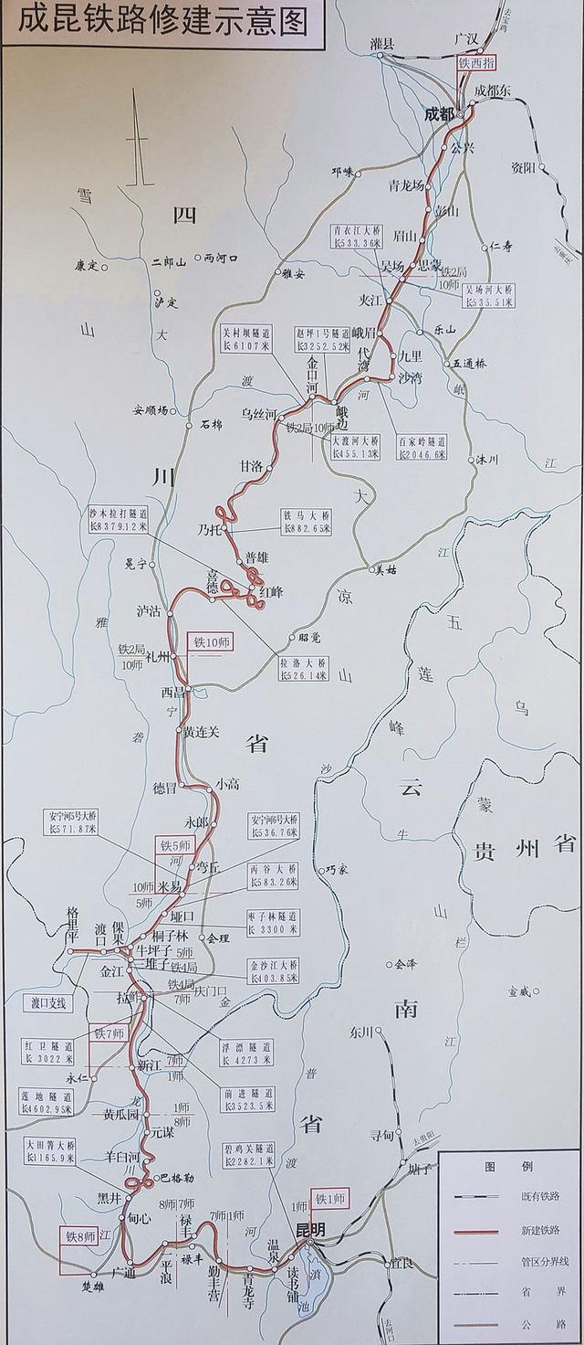 成昆线全长1096公里,铁道兵承担了667公里。
