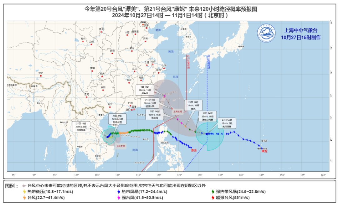 今年第21号台风“康妮”(热带风暴级),今天14时位于台湾省花莲市东南方向约1350公里的西北太平洋洋面上。从最近预报来看,“康妮”路径继续西调,很可能在我国台湾省登陆。11月1日前后,上海可能受到“康妮”外围偏东气流影响,台风路径仍存在变数。