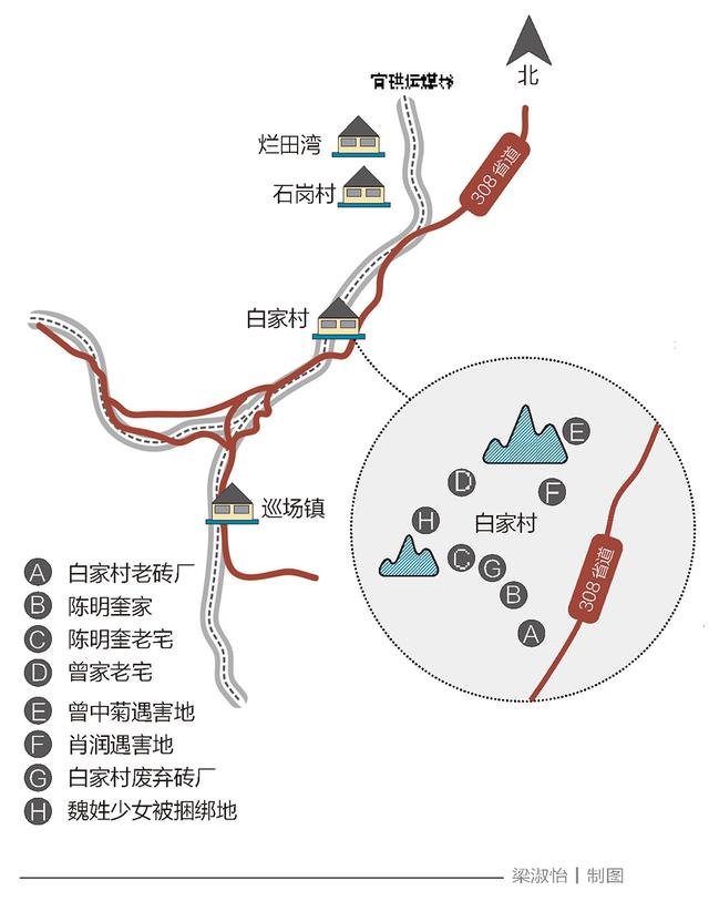 然而到了下午,却没有一个受访村民表示看到过他。事后表明,他在那个下午骑电瓶车到过石岗村的肖泽均家,一直到晚上八点多才又骑电瓶车回来。