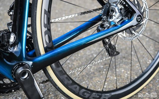 新款保留了老款上超宽后上叉+无叉桥的设定,TREK认为让后上叉远离后轮可以减少扰流。对于我们一般消费者来说,这种设定带来了清爽的外观以及更大的轮胎间隙。