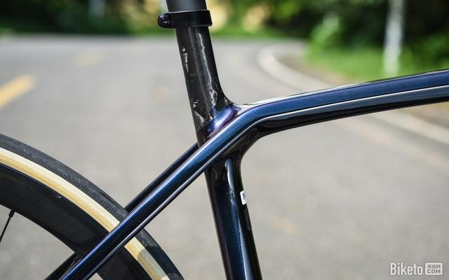 可能到这里,你们都觉得新车就是Madone按比例缩放来的,但上管还是保留了Emonda那十分夸张的大幅度变径设计。上管靠近三款处比旧款更宽,基本是小编见过最宽的上管了。