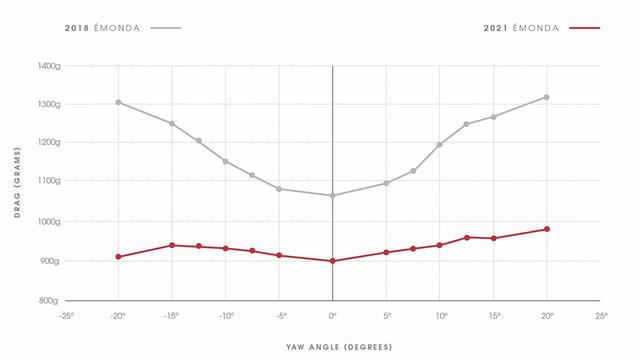 立管也从之前的方形截面改成了Kamm Tail截面,你们猜猜新款Emonda风阻能降低多少?