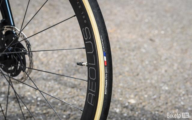 外胎自然也是顶级配置,配备了Bontrager R4棉布套管开口胎,25c规格实际安装宽度为27mm。