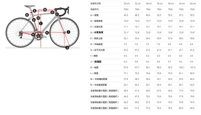车架几何直接沿用了Madone上的H1.5,并增加了一款47cm的车架,以适应更多体型的用户。STR(Stack与Reach的比值)从1.35开始呈线性增加,到58cm则为1.47(60/62两个尺码则高达1.5以上),越小的车架几何越激进。总的来说是因为Reach较长,拉低了STR值,H1.5的Stack值还是比较大的,可以减少垫圈的数量,只要不是柔韧性特别差,都不用当“垫圈哥”。