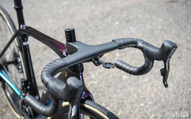 平坦的上把无论是抓握还是用TT姿势,都比较舒适。不过原厂上把包一半把带的设定会比较硌手,小编个人更倾向于上把不包或全包。