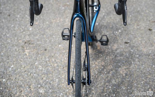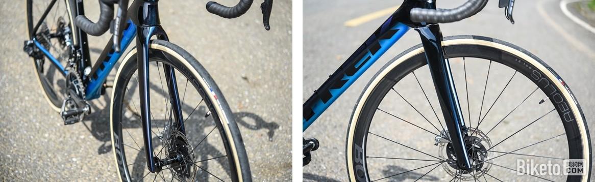 全新Emonda的前叉使用了Kamm Tail截面。就像是Madone前叉按比例缩小,给人一种无数世巡赛下来,Madone前叉都饿瘦了的感觉。但奇怪的是叉肩竟然没被“饿瘦”。